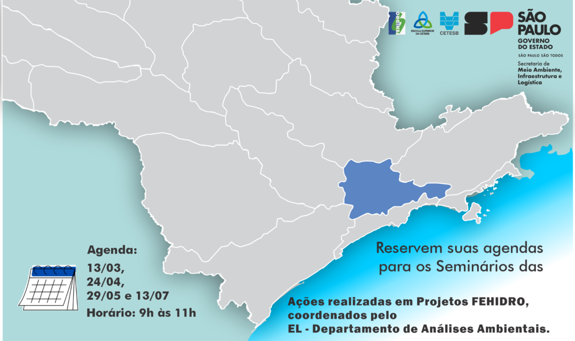A CETESB, por meio do Departamento de Análises Ambientais (EL) e do Setor de Capacitação e Formação Continuada (PESF), realizará um ciclo de seminários on-line para apresentação de ações e resultados de projetos desenvolvidos com recursos do FEHIDRO na Bacia Hidrográfica do Alto Tietê.