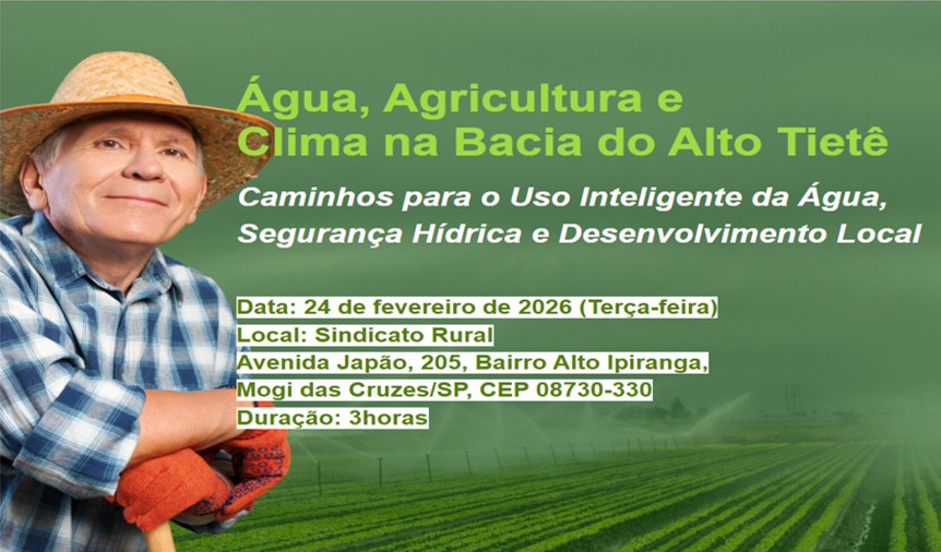O evento “Água, Agricultura e Clima no Alto Tietê”, que será realizado em 24 de fevereiro de 2026, faz parte da execução do empreendimento FEHIDRO indicado pelo CBH-AT “2024-AT-829 – CAPACITACAO DA POPULACAO RURAL EM BOAS PRATICAS AGRICOLAS E TÉCNICAS DE IRRIGAÇÃO NA ÁREA DE PROTEÇÃO E RECUPERAÇÃO DOS MANANCIAIS ALTO TIETÊ (APRM-ATC)”, cujo tomador é o CONDEMAT+.