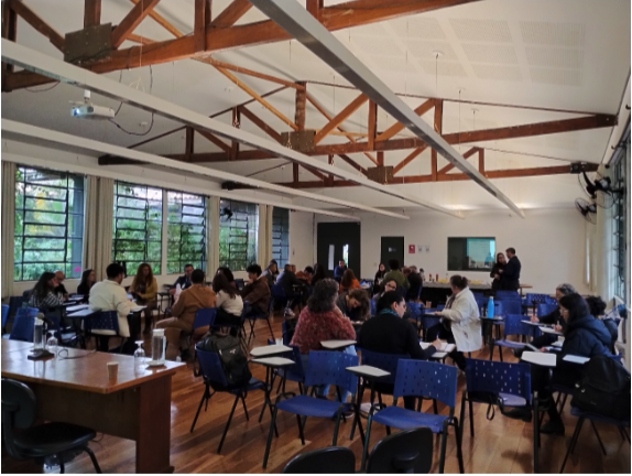 A oficina presencial reuniu 38 participantes, entre representantes de instituições de ensino, prefeituras, empresas, organizações da sociedade civil e outros setores atuantes na bacia. Durante o evento, foram promovidas discussões sobre temas centrais como a priorização de problemas e a intersetorialidade, ações práticas e financiamento da educação ambiental, além de estratégias para mobilização e engajamento de públicos-chave. Também foram apresentados os principais resultados obtidos na fase de diagnóstico, que servirão de base para as próximas etapas de construção do Programa.